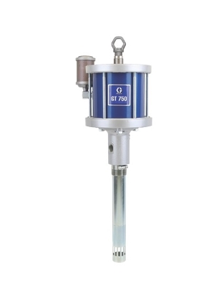 Насос GT 750 был разработан для быстрого перекачивания консистентной смазки в разных областях применения и меняющихся средах. Благодаря комбинации большого 7,5-дюймового (19,05 см) пневматического двигателя и нижнего блока насос GT 750 перемещает то же количество консистентной смазки за меньше в четыре раза число ходов поршня насоса.