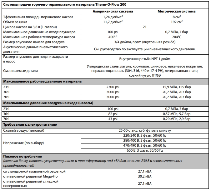 Характеристики Therm-O-Flow